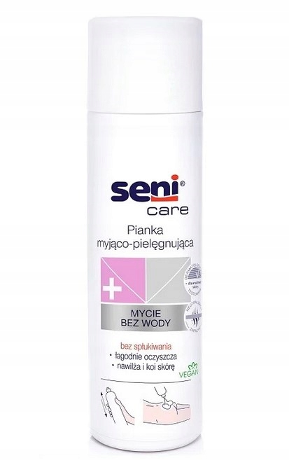 Пінка для вмивання та догляду Seni Care ніжно очищає шкіру, залишаючи на ній захисний шар.