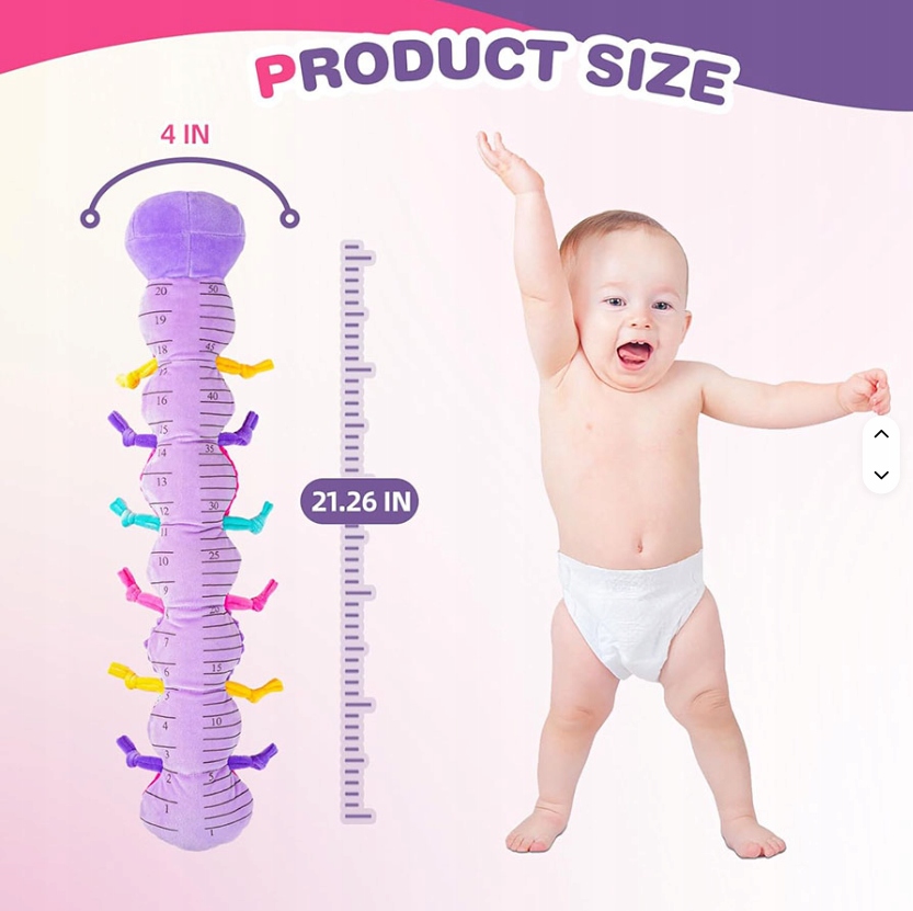 ☝️На животику гусениці є лінійка довжиною 51 см, завдяки якій ви можете щодня вимірювати, як швидко росте ваш малюк. Це додатковий, чарівний елемент, який робить гусеницю не тільки іграшкою, а й гарним сувеніром!