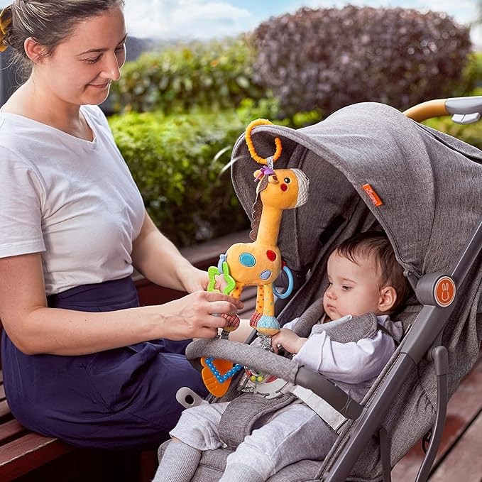 Дайте дитині радість відкрити з чарівною плюшевою храпочкою у формі жирафи! Ця барвиста м'яка іграшка була розроблена для підтримки сенсорного розвитку малюка з перших місяців життя. Ідеально підходить для звисання в інвалідному візку, ліжечці, автокріслі або ігровому центрі. М’який, приємний на дотик і сповнений контрастних кольорів - це радує кожну дитину!