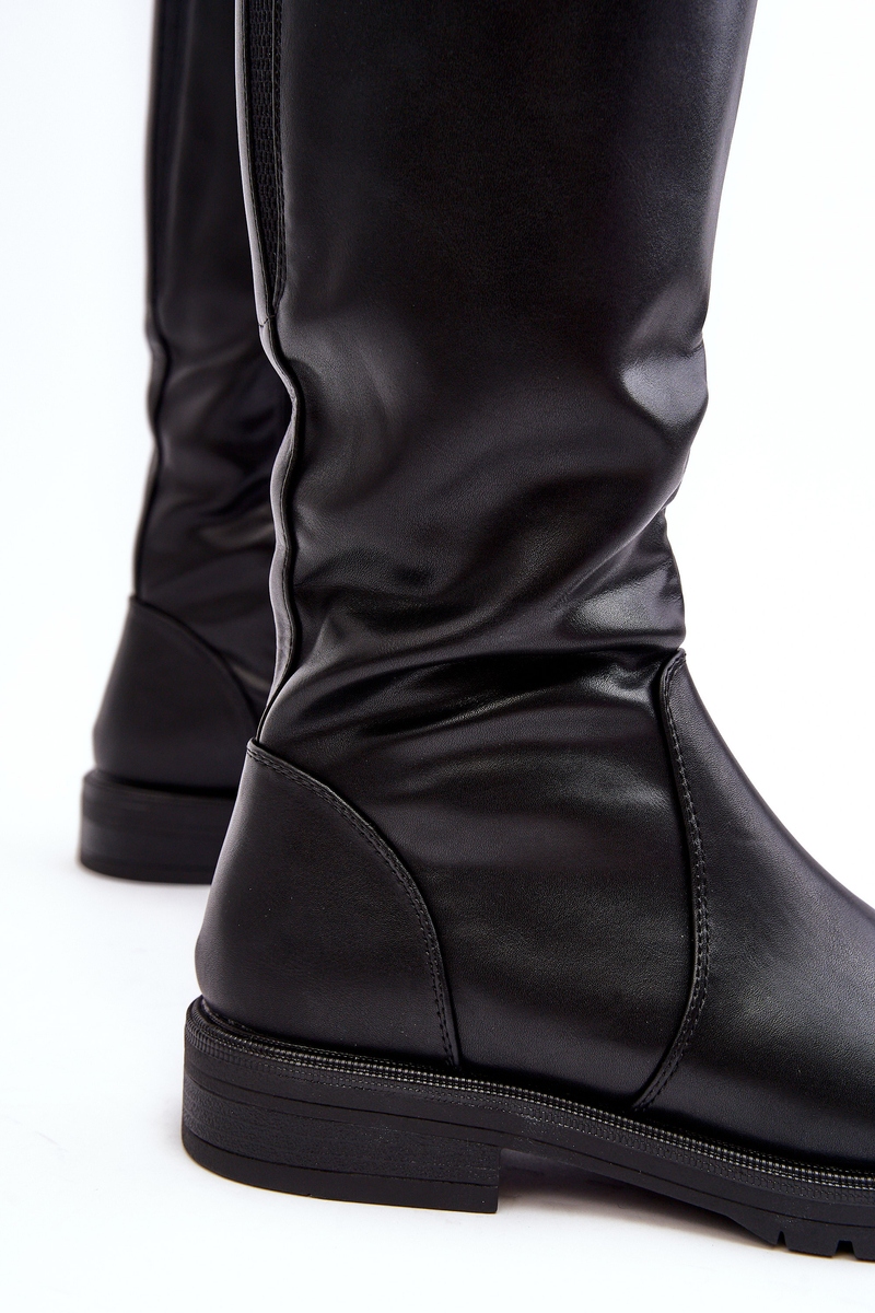 SERGIO LEONE KZ529 ЖІНОЧІ ЧОБОТИНКИ НА ПЛОСКІЙ УТЕПЛЕНІЙ П'ЯТІ, ЧОРНІ