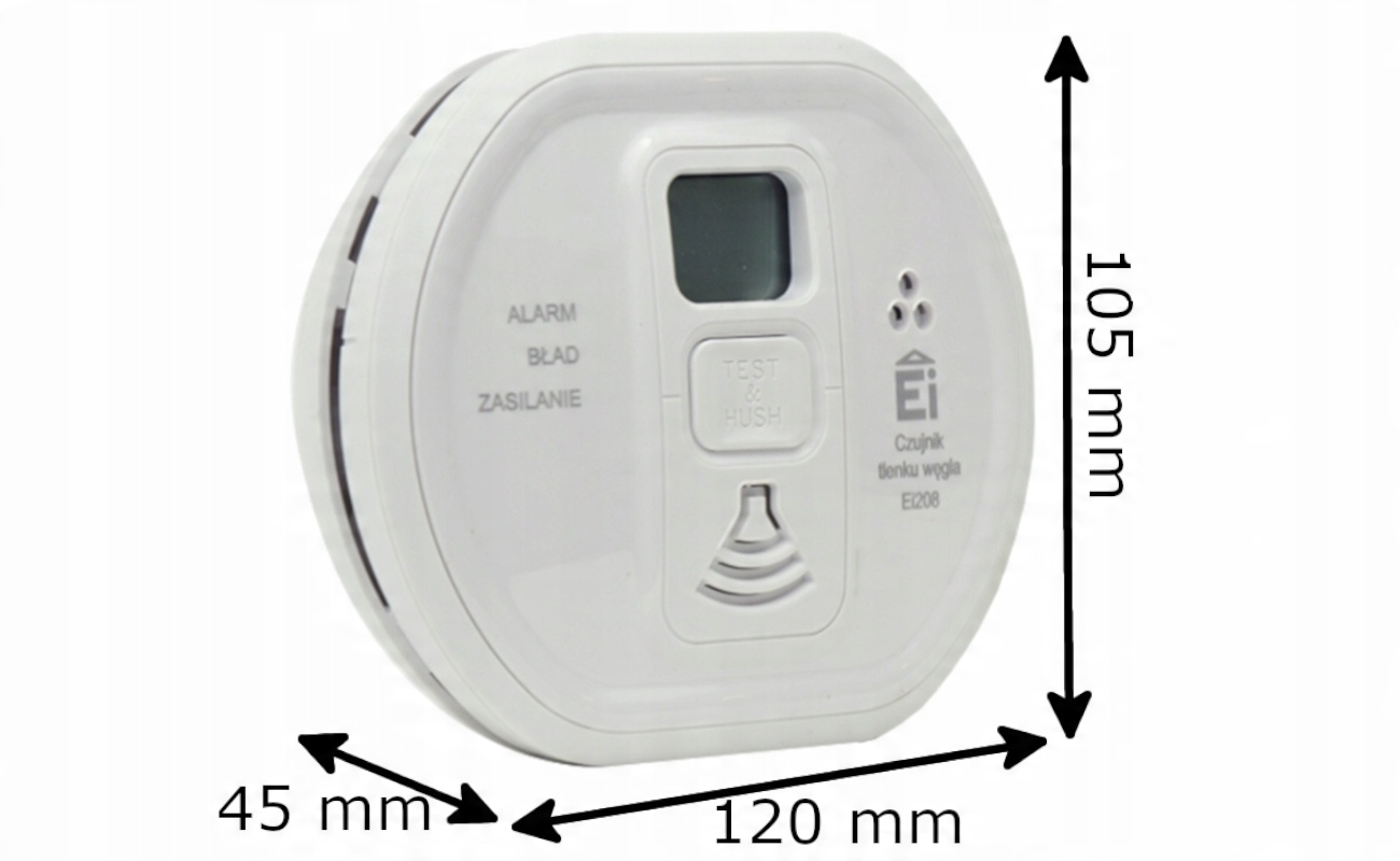 ДЕТЕКТОР ОКИСУ ВУГЛЕЦЮ З СХВАЛЕННЯМ - РК-ДИСПЛЕЙ, КНОПКА ТЕСТУ + ВБУДОВАНА БАТАРЕЯ