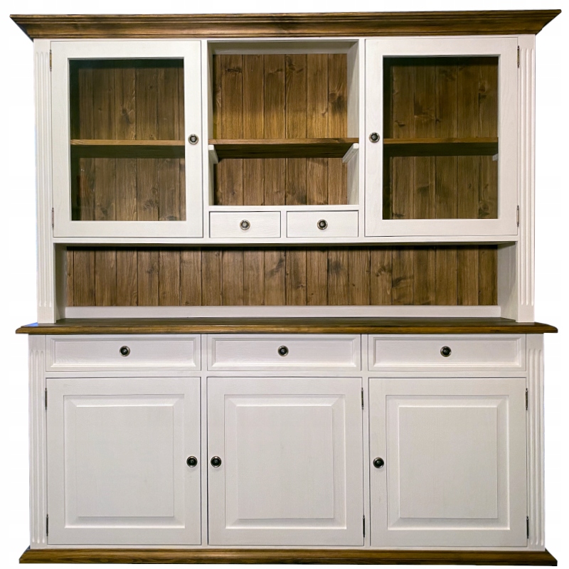 кухонний сервант повністю виготовлений з суцільної сосни . Завдяки поєднанню класичного сільського стилю з сучасним забарвленням, меблі стає дуже сучасним одночасно. Більшість робіт над його створенням виконували вручну, використовуючи традиційні інструменти та зі старою, перевіреною технологією. У поєднанні з іншими меблями з нашої колекції це створює дивовижний вигляд, що свідчить про складний стиль та клас жителів.