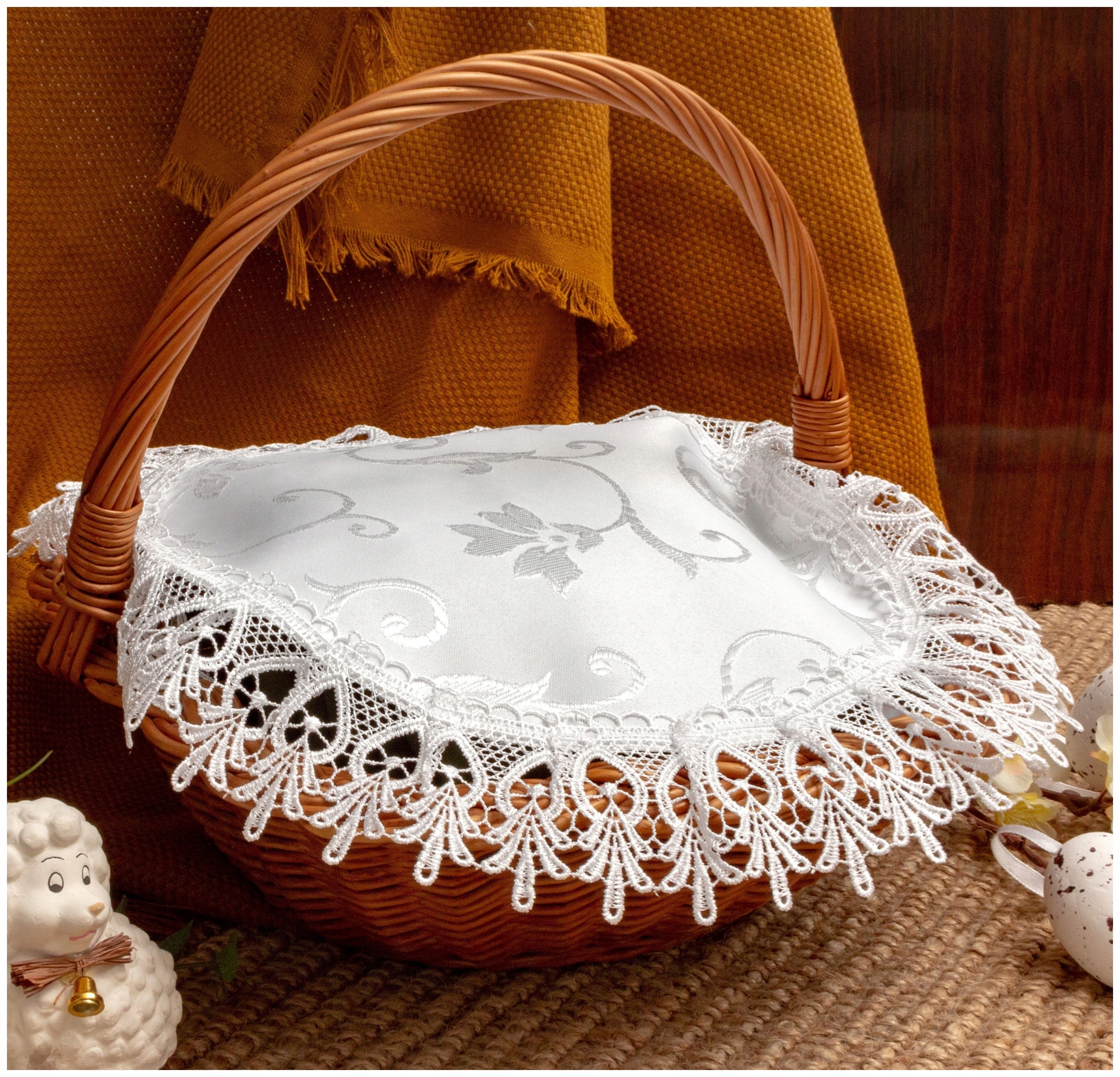 ✅Декоративний елемент – Мереживна серветка додає кошику елегантності та підкреслює урочистість свята.