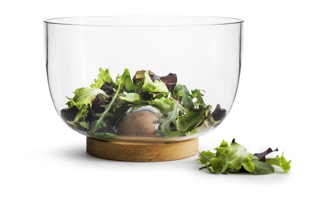 - миска для подачі салатів або фруктів з дубовою підставкою що захищає поверхню, на якій стоїть чаша