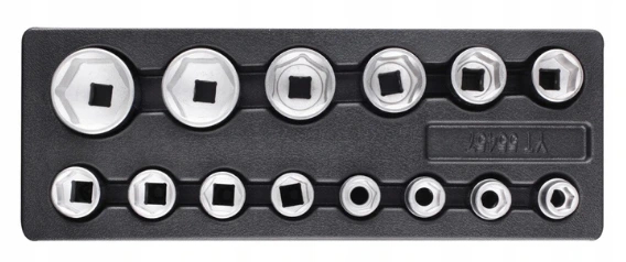 INSERT 10: шестигранні гнізда 3/4" 19 мм (YT-1301); 21 мм (YT-1302); 22 мм (YT- 1303); 24 мм (YT-1305); 27 мм (YT-1308); 28 мм (YT-1309); 30 мм (YT-1311); 32 мм (YT-1312); 34 мм (YT-1314); 36 мм (YT-1316) ); 41 мм (YT-1318); 46 мм (YT-1322); 50 мм (YT-1324); 55 мм (YT-1328)