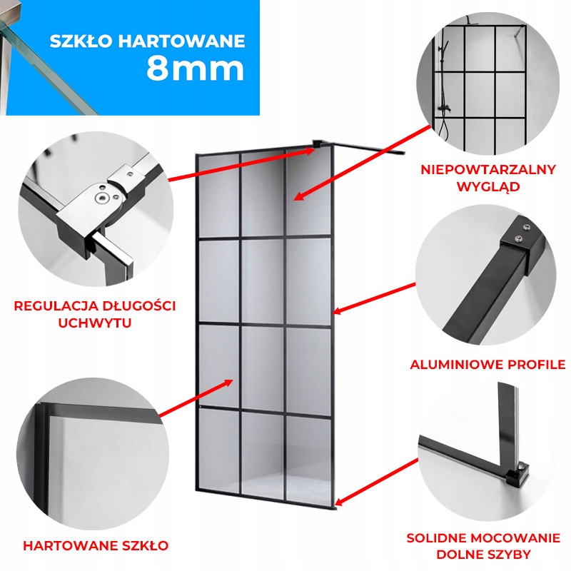 SH04F ДУШОВА СТІНА ЧОРНА 120 СМ 8 ММ