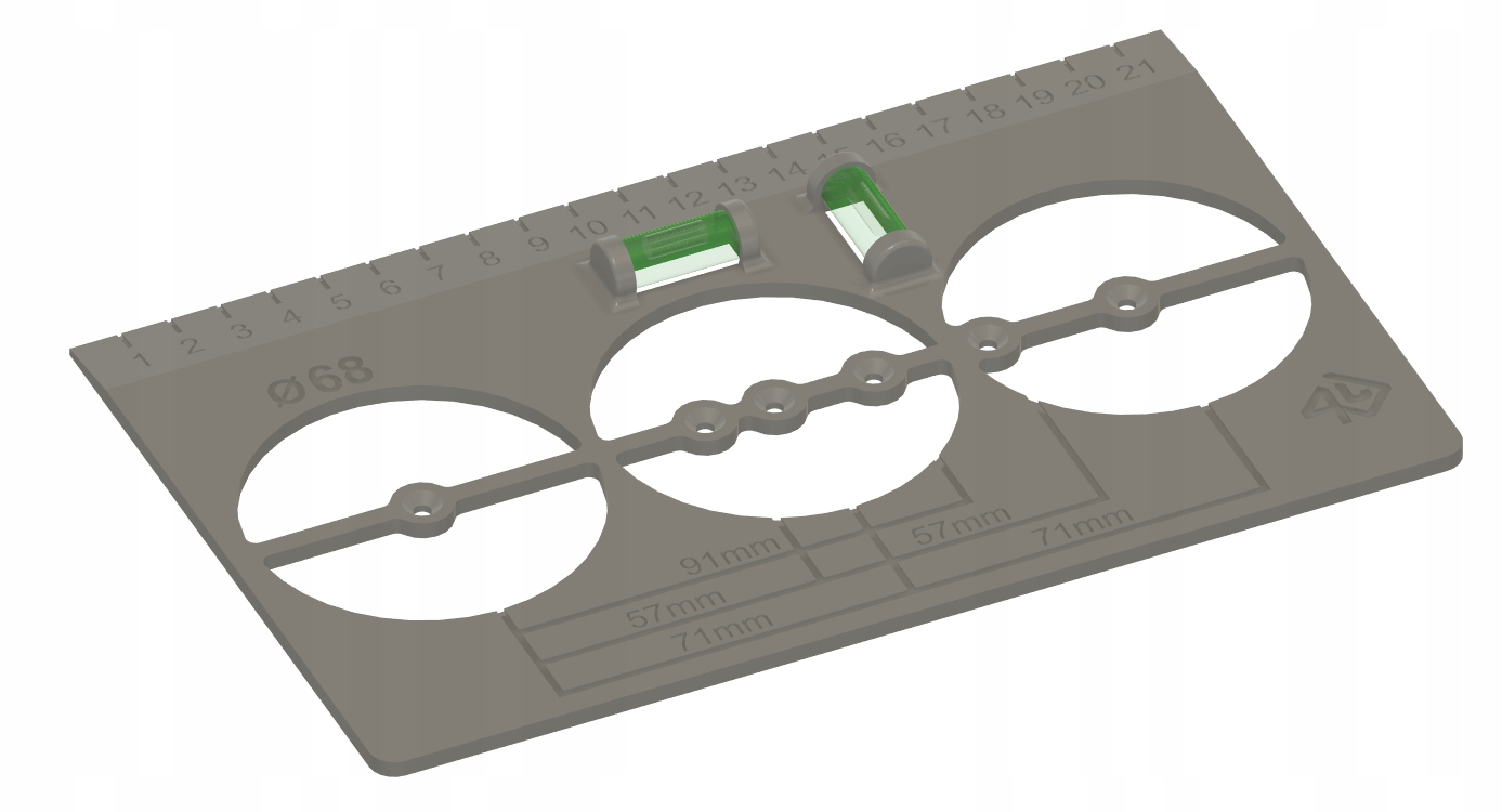 ШАБЛОН ДЛЯ ВИЗНАЧЕННЯ РОЗМІРІВ ПОТОЧНИХ ОТВОРОВІВ КОРОБКИ З РІВНЕМ LIBELLA
