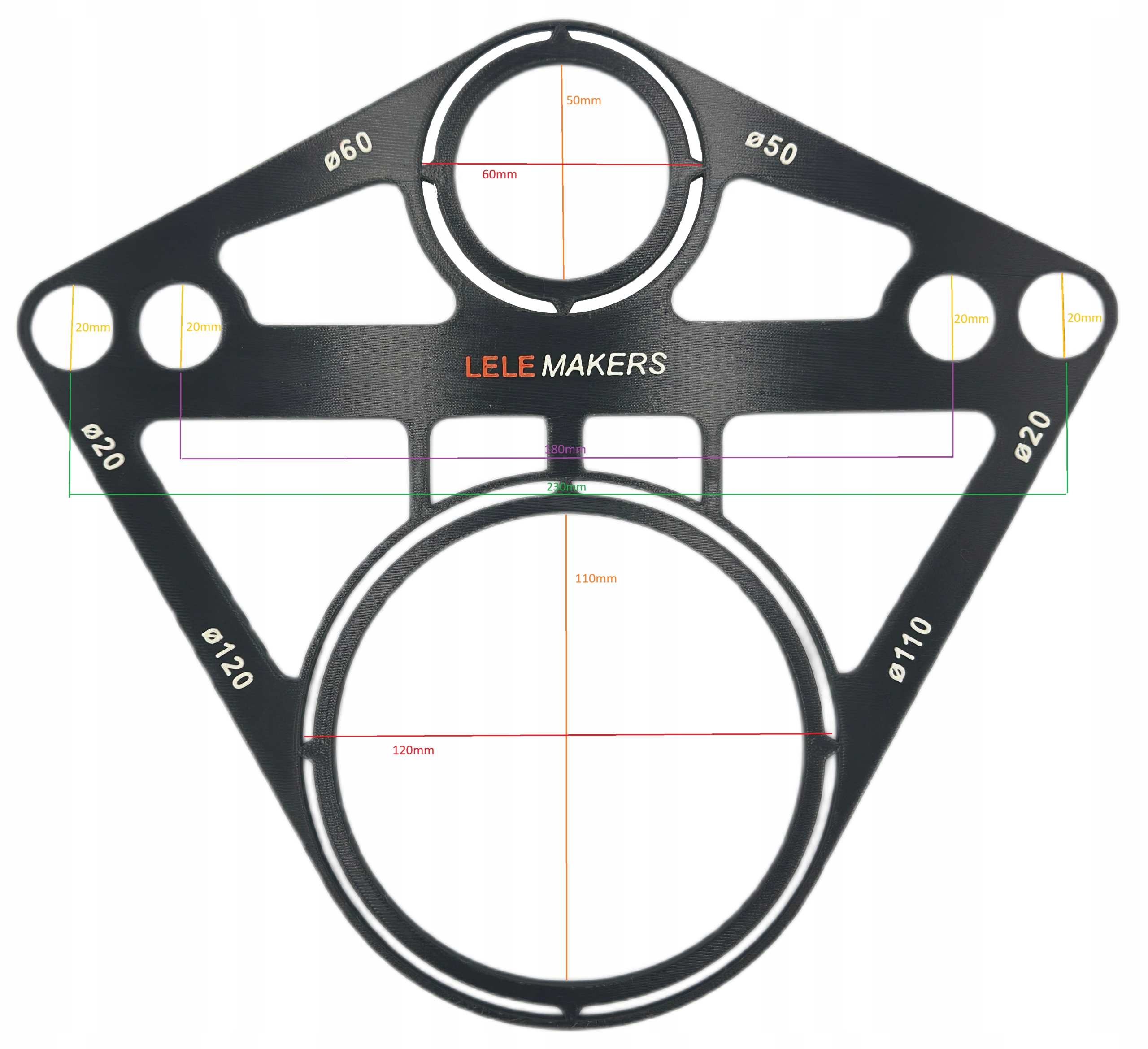 Шаблон має отвори діаметром: 20 мм, 50 мм, 60 мм, 110 мм та 120 мм b>