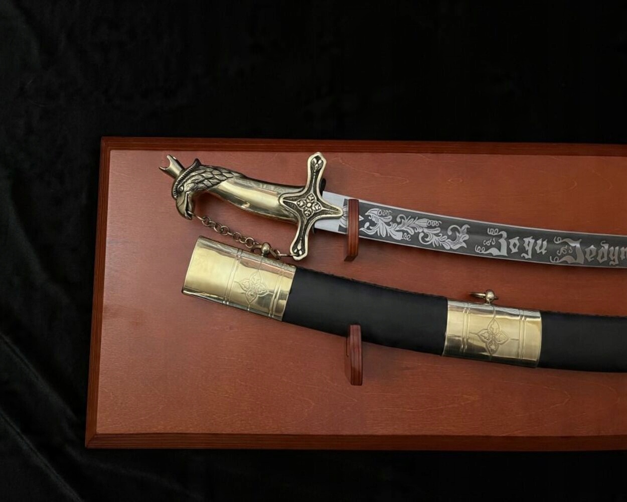 Шабля не заточена і не пристосована для заточування (не підходить для фехтування). Клинок (голова) виготовлений з полірованої толеданської сталі. Полірування виконується до отримання однорідної, матової, гладкої структури. Ми рекомендуємо час від часу змащувати лезо та піхви дуже тонким шаром оливкової олії або іншого мастила (це допоможе зберегти високу якість продукту).