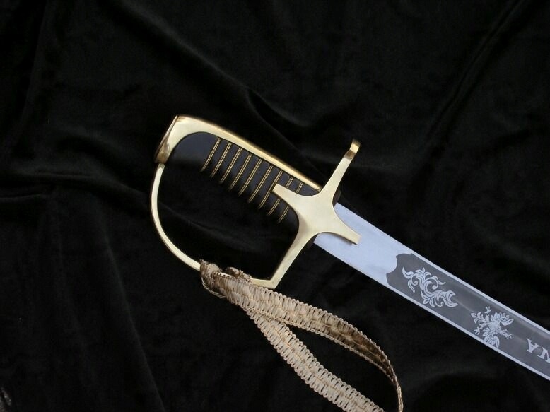 Клинок вигнутий і вигравіруваний написом «Честь і Батьківщина» та польським коронованим орлом. Рукоятка дуже схожа на гусарську, з латунною гардою арбалета та латунним капюшоном. Корпус ручки обтягнутий чорною шкірою.
