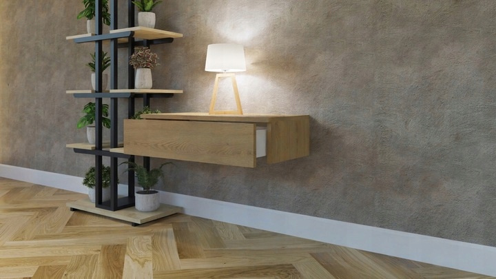Виріб не вимагає складання, лише кріплення до стіни. Шафа виготовлена з ламінованої дошки солярний дуб, стійкої до подряпин. Покритий кромкою ПВХ товщиною 1 мм.