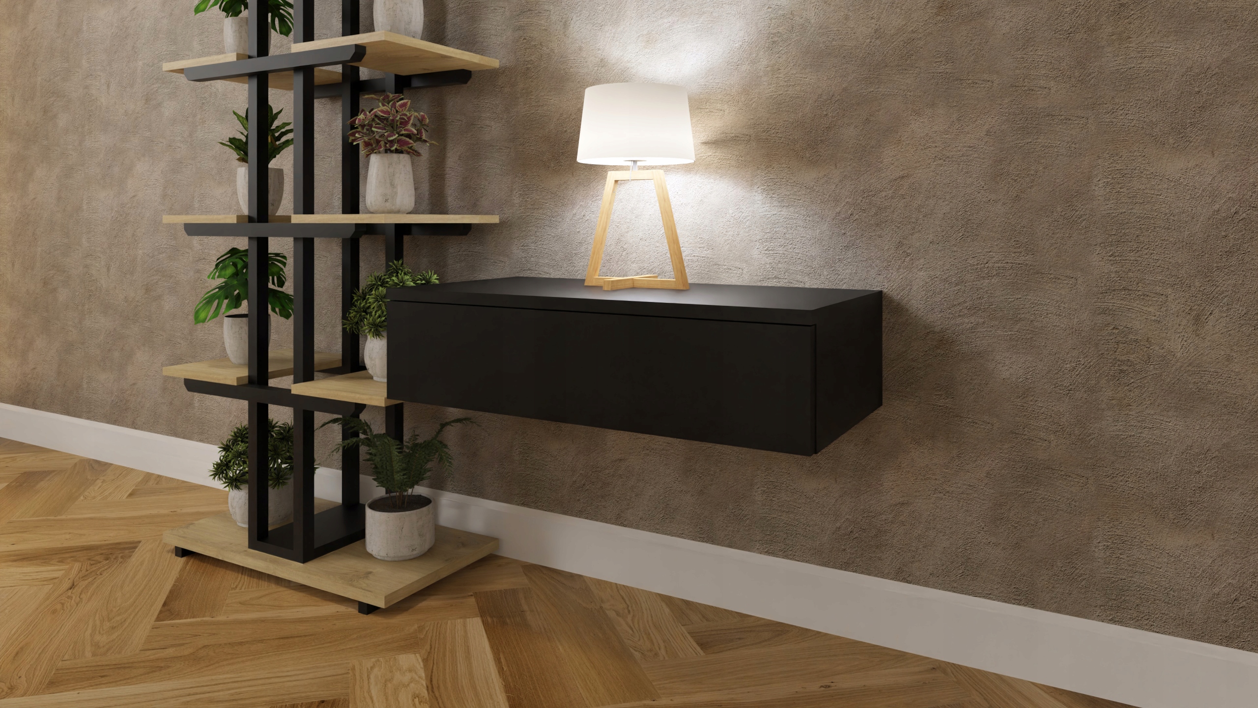 Виріб не вимагає складання, лише кріплення до стіни. Шафа виготовлена з чорного ламінованого картону, стійкого до подряпин. Покритий кромкою ПВХ товщиною 1 мм.
