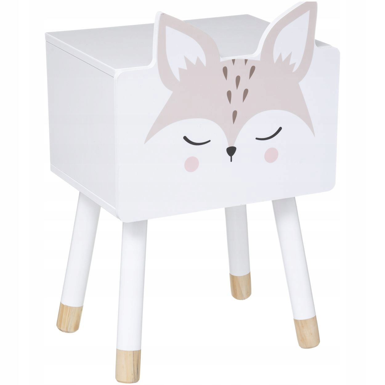 Тумбочка - це предмет меблів, який повинен стояти біля ліжка кожної дитини. Він виконає не тільки практичну функцію, але і стане гарним доповненням, яке доповнить облаштування дитячої кімнати. Тумба послужить місцем для нічника, будильника, а також дозволить прибрати чашку. Тумбочка має закриту поличку, куди дитина може сховати найнеобхідніші речі. Дверцята шафи мають форму сплячої лисиці, що робить меблі надзвичайно чарівними. У пропозиції також є стілець і стіл з тієї ж колекції.