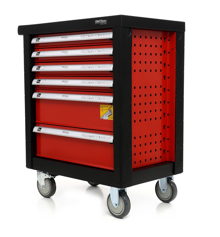 Тамба для майстерні від відомої компанії KRAFT&DELE - професійний інструмент, який повинен бути в кожній автомайстерні. Він характеризується естетичними, сучасними та інноваційними рішеннями. Дозволяє підтримувати порядок на робочому місці та захищає інструменти від крадіжки та пошкодження!! (Коляска оснащена замком проти відкривання, який відкривається тільки спеціальним ключем). Візок має ергономічні ручки, адаптовані до найважчих умов, інтегровані з верхніми, повністю висувними ящиками на підшипниках. Всі ящики закриваються на центральний замок! Крім того, шафа має подвійні стінки та замки для ящиків. Коляска оснащена 4 поворотними колесами, що робить її дуже зручною для транспортування. Крім того, він має кути, які захищають від випадкових пошкоджень, наприклад, кузов виготовлений з поліпропілену