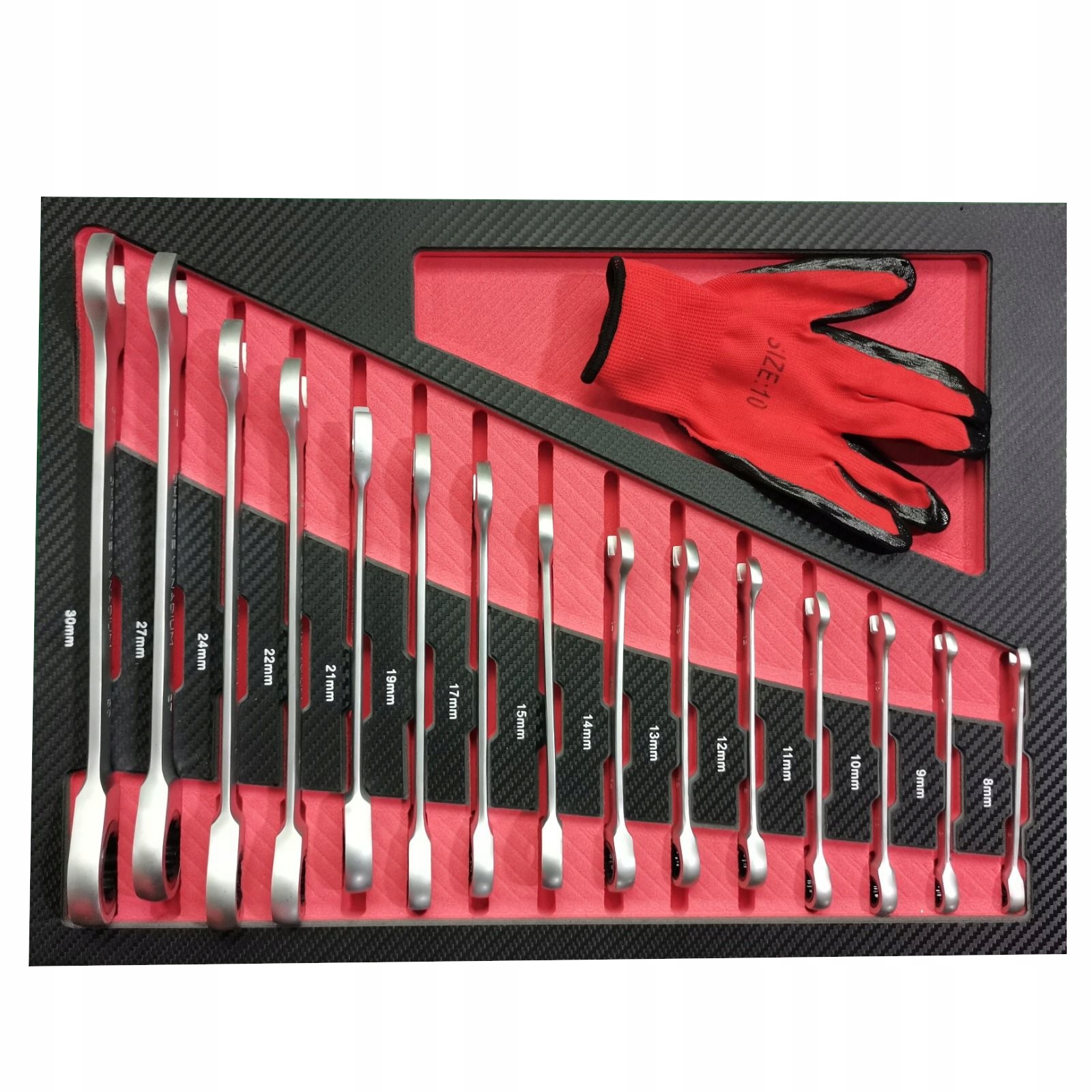 - Ключі комбіновані з тріскачкою 15 шт.: 8, 9, 10, 11, 12, 13, 14, 15, 17, 19, 21, 22 , 24, 27, 30 мм