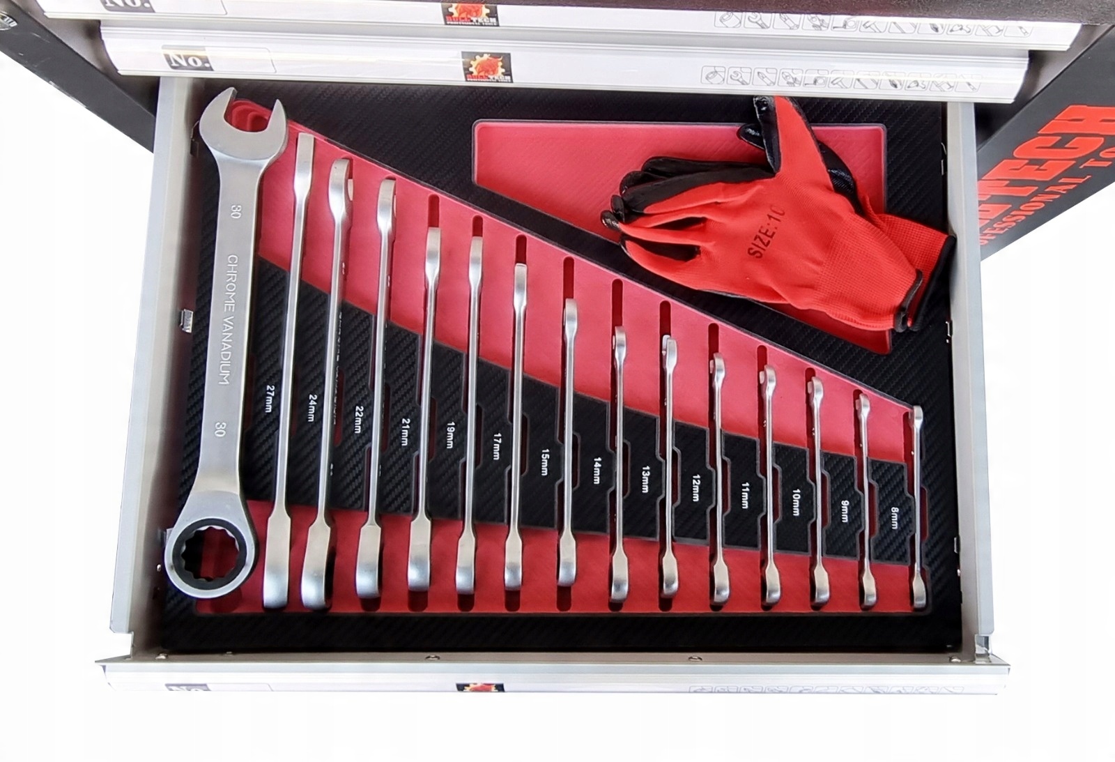 - Ключі комбіновані з тріскачкою 15 шт.: 8, 9, 10, 11, 12, 13, 14, 15, 17, 19, 21, 22, 24, 27, 30 мм