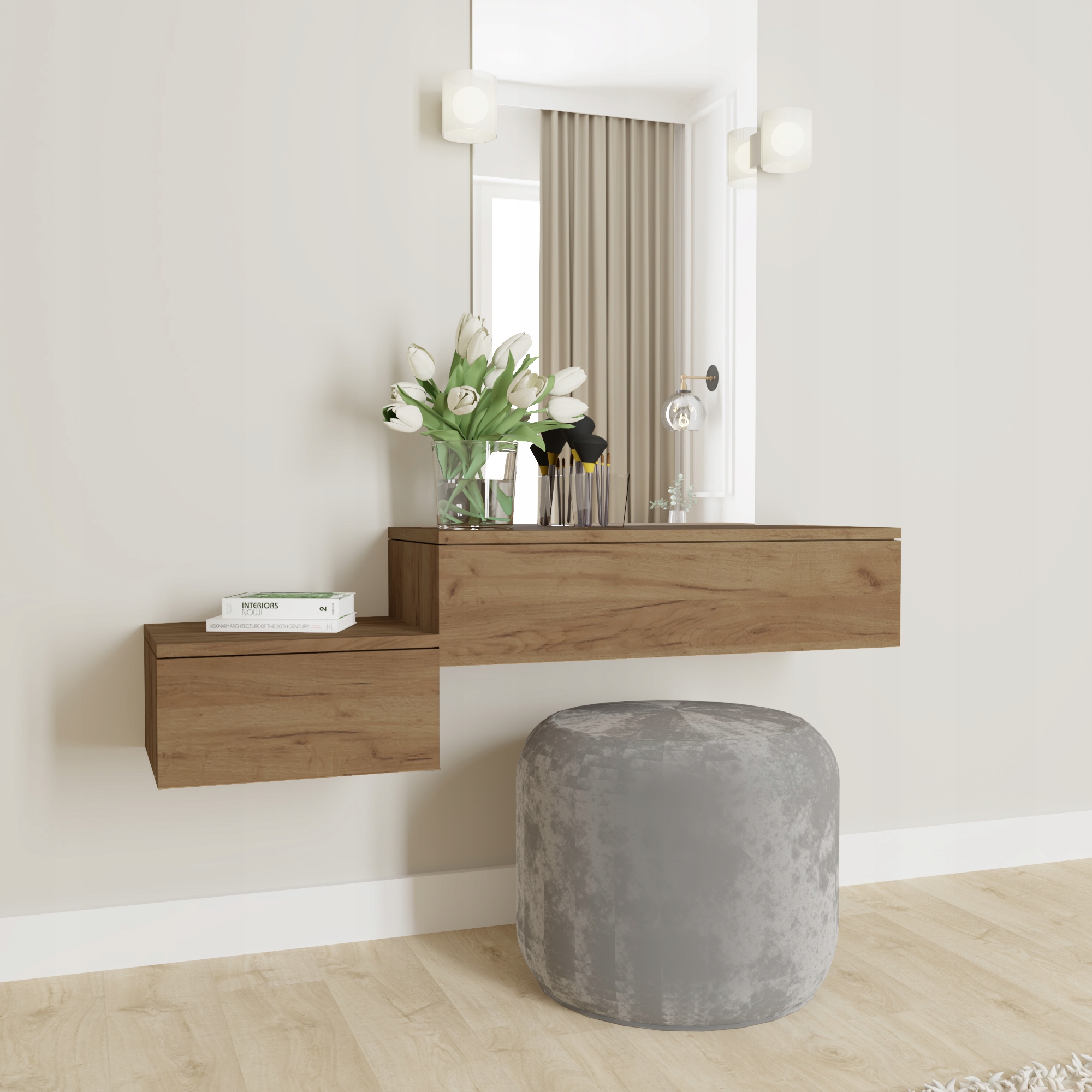 Унікальний туалетний столик для багатьох застосувань, він також може служити як туалетний столик в спальні або письмові столи. Його також можна використовувати в передпокої для підручних речей або просто як елемент декору. Завдяки своєму зовнішньому вигляду він пасує як до класичних, так і до сучасних інтер'єрів. Його підвісна форма додасть легкості. > до вашого інтер’єру, а також дозволить нам підтримувати чистоту у важкодоступних місцях.