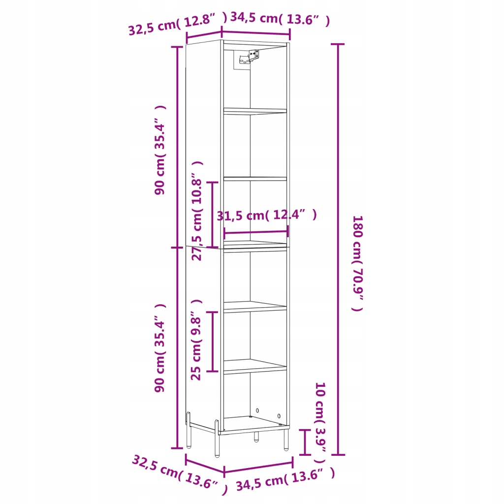 - Загальні розміри: 34,5 x 32,5 x 180 см (Ш x Г x В)
