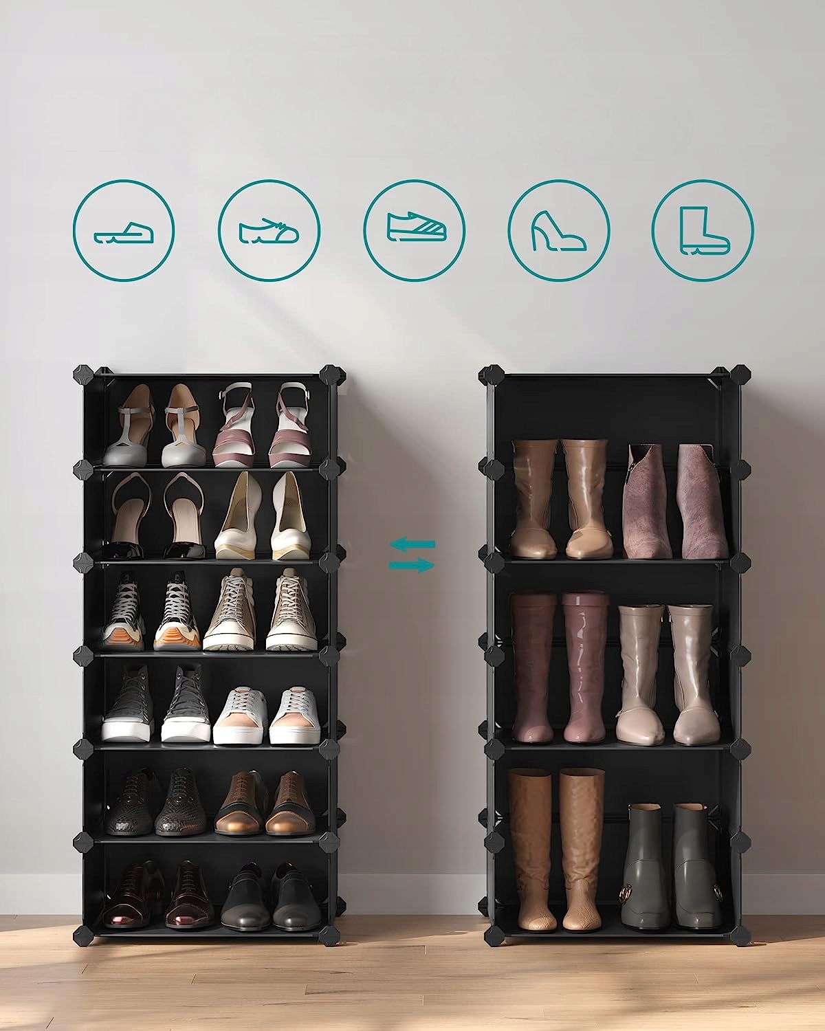 Легко переставляйте полиці, щоб створити ідеальне місцедля будь-якої пари взуття чи інших речей.