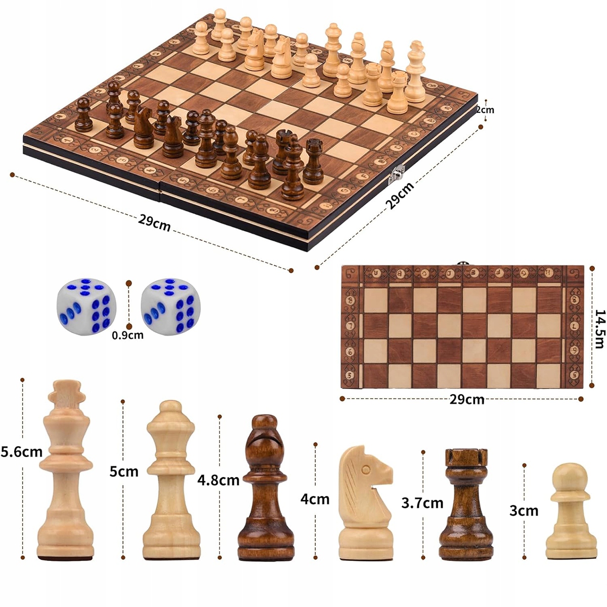 ШАХОВІ СХІДКИ ДЕРЕВ'ЯНИЙ МАГНІТНИЙ КЛАСИЧНИЙ ФОН ШАХИ 29X29 СМ