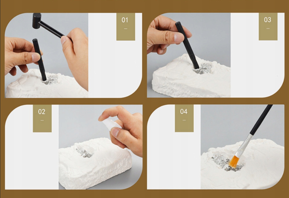 Перевірте своє терпіння та спритність під час гри з відкривачем скарбів. Вам подобається дитина, яка любить пізнавати нові речі? Набір - це дуже весело, завдяки якому ваша дитина буде відчувати себе справжнім археологом. Цього разу, однак, розкопки не стосуються копалин динозаврів. Ви можете заглибитися у справжні скарби каменів і снарядів.