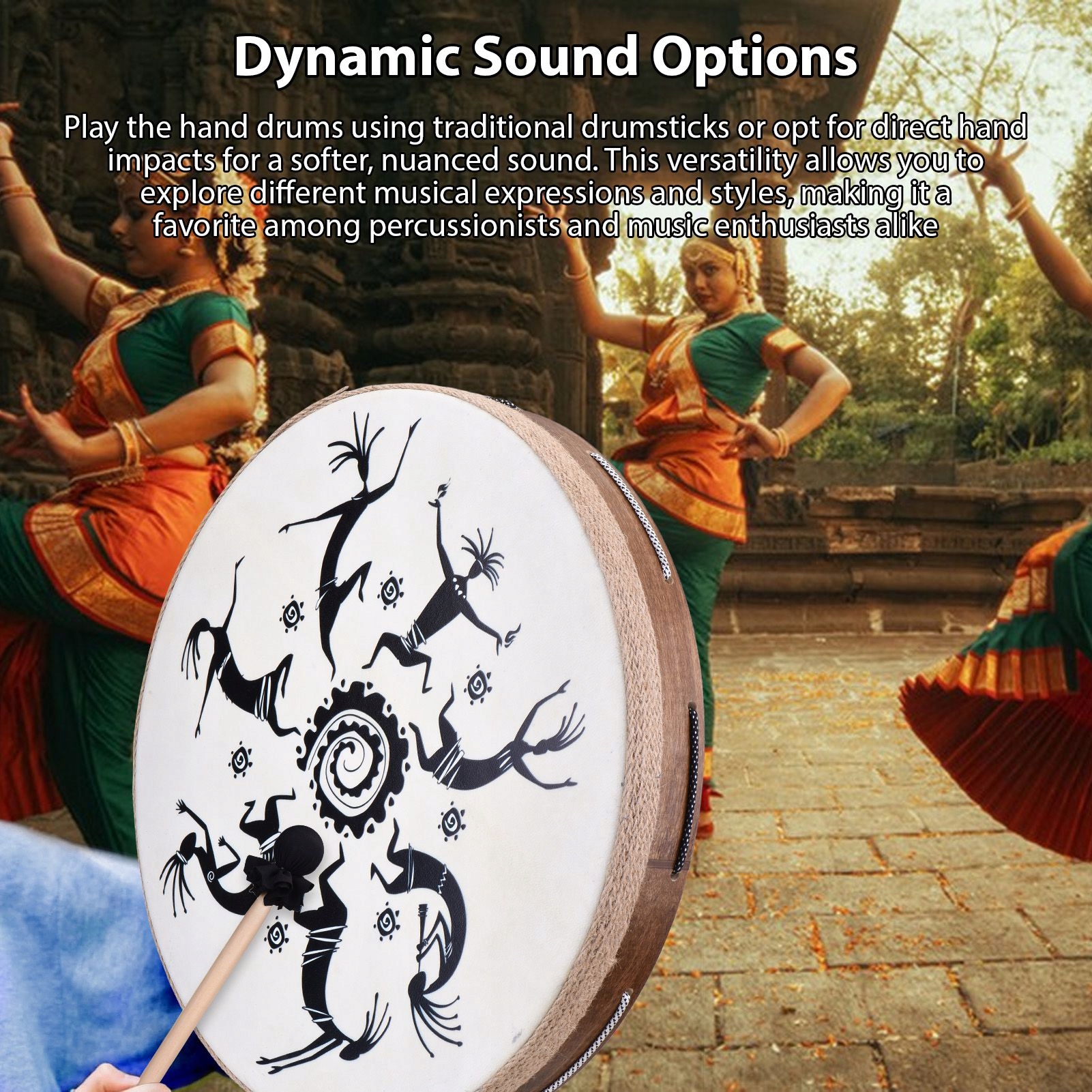 2. Універсальне виконання: у різноманітних налаштуваннях цей шаманський барабан ідеально підходить для музичного супроводу, співу та танцювальних виступів. Його гучний і яскравий звук робить його придатним як для зустрічей на відкритому повітрі, так і для закритих сеансів у приміщенні, надаючи життя будь-якій події.