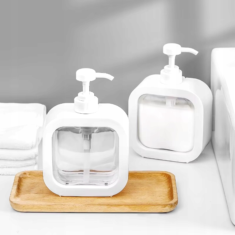 Диспензатор шампуня з білим прозорим з 500 мл стоячим насосом ⭐⭐⭐⭐⭐