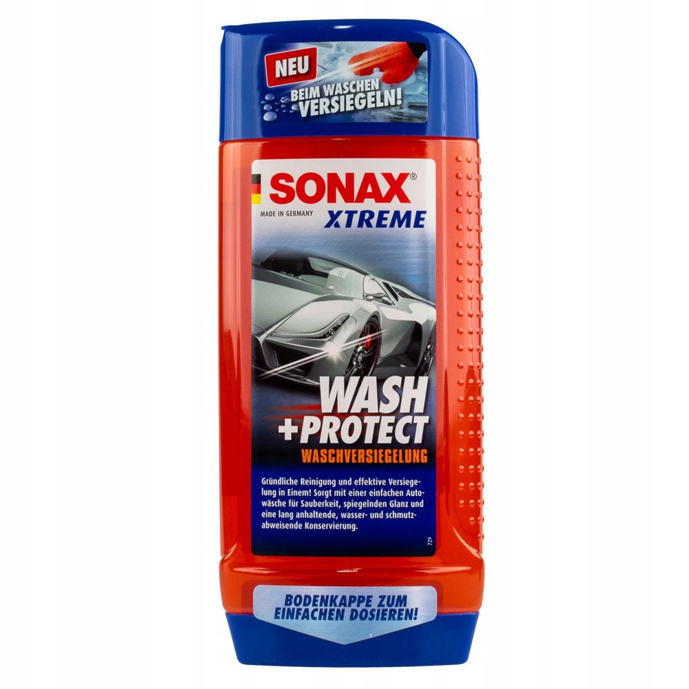 SONAX Xtreme Wash & Protect - інноваційний шампунь для миття рук, який створює стійке захисне покриття >. Це простий і зручний спосіб досягти ефекту гідрофобізації поверхні фарби. Крім того, завдяки ретельно підібраним інгредієнтам цей шампунь покращує блиск лаку та забезпечує захист від надмірного налипання бруду.
