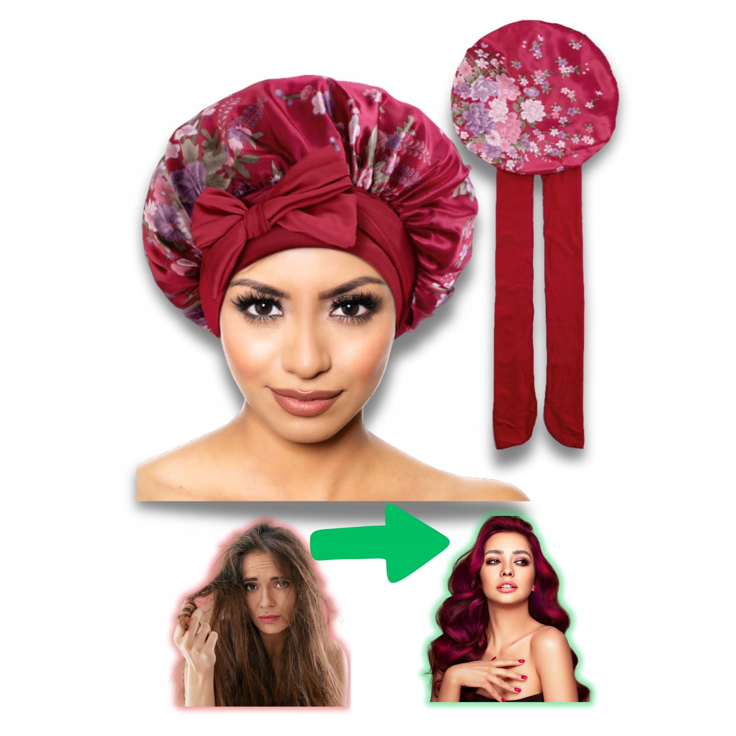 ШАПОЧКА ДЛЯ СНУ НА ВОЛОССЯ АТЛАС + ШОВК ДЛЯ ЖІНКИ В КВІТИ ПРИВ'ЯЗАНИЙ