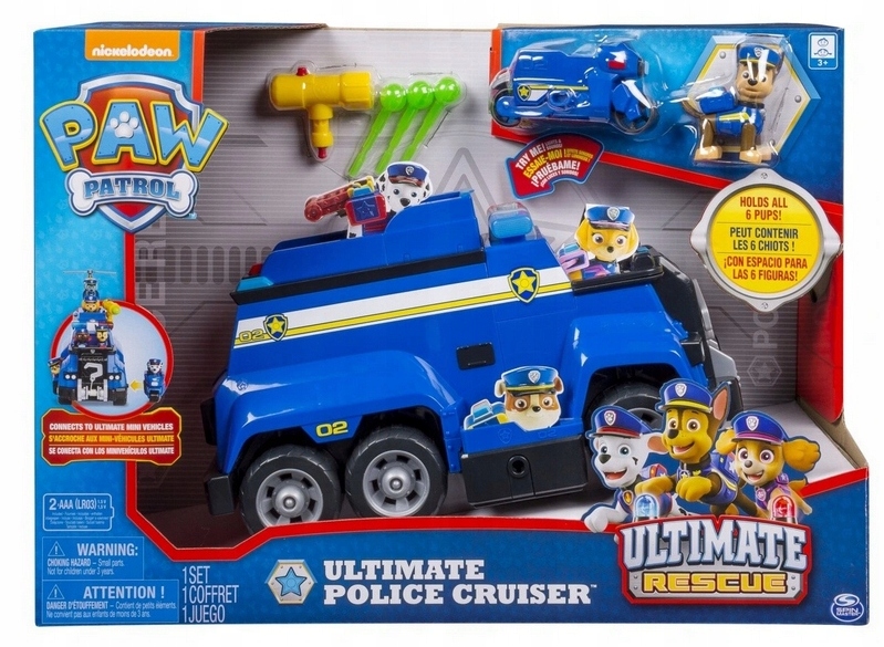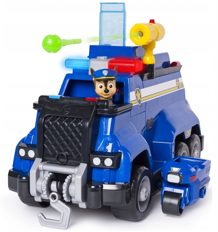 - великої вантажівки поліцейської машини Чейзаз ракетною установкою, світлом поліцейського півня та різними звуками (зокрема, поліцейська сирена, автомобіль із двигуном тощо)