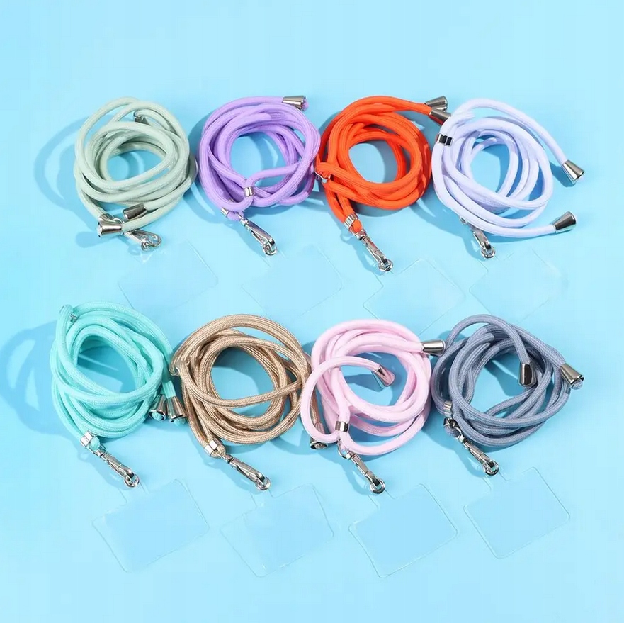Універсальний шнурок для телефону з регульованим шнурком, елегантними металевими аксесуарами та біркою.