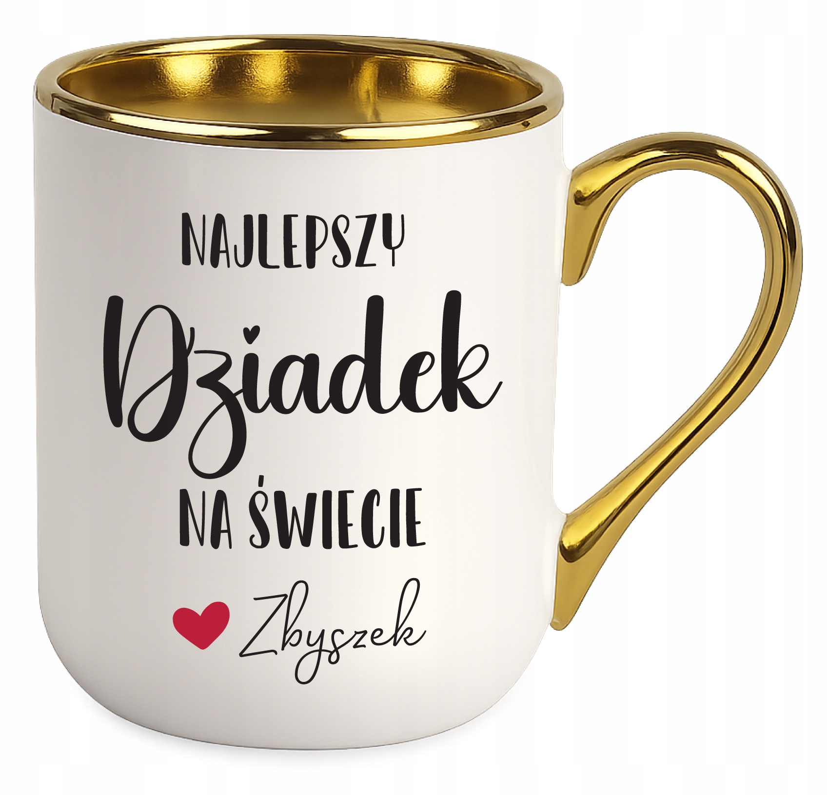 Елегантна кухоль із золотою ручкою та обідком у подарунок для дідуся, на будь-яке ім'я