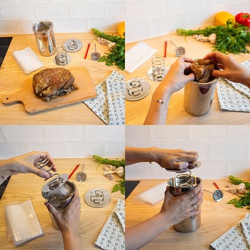 Робота цієї посудини заснована на нагріванні води і варінні м'яса на пару. Ви вирішуєте, які натуральні інгредієнти ви хочете використовувати для приготування власного смачного м’яса – в’яленого та нев’яленого. Ви можете бути впевнені, що він не містить жодних консервантів та штучних добавок, а його смак чудово підкреслять обрані вами спеції.