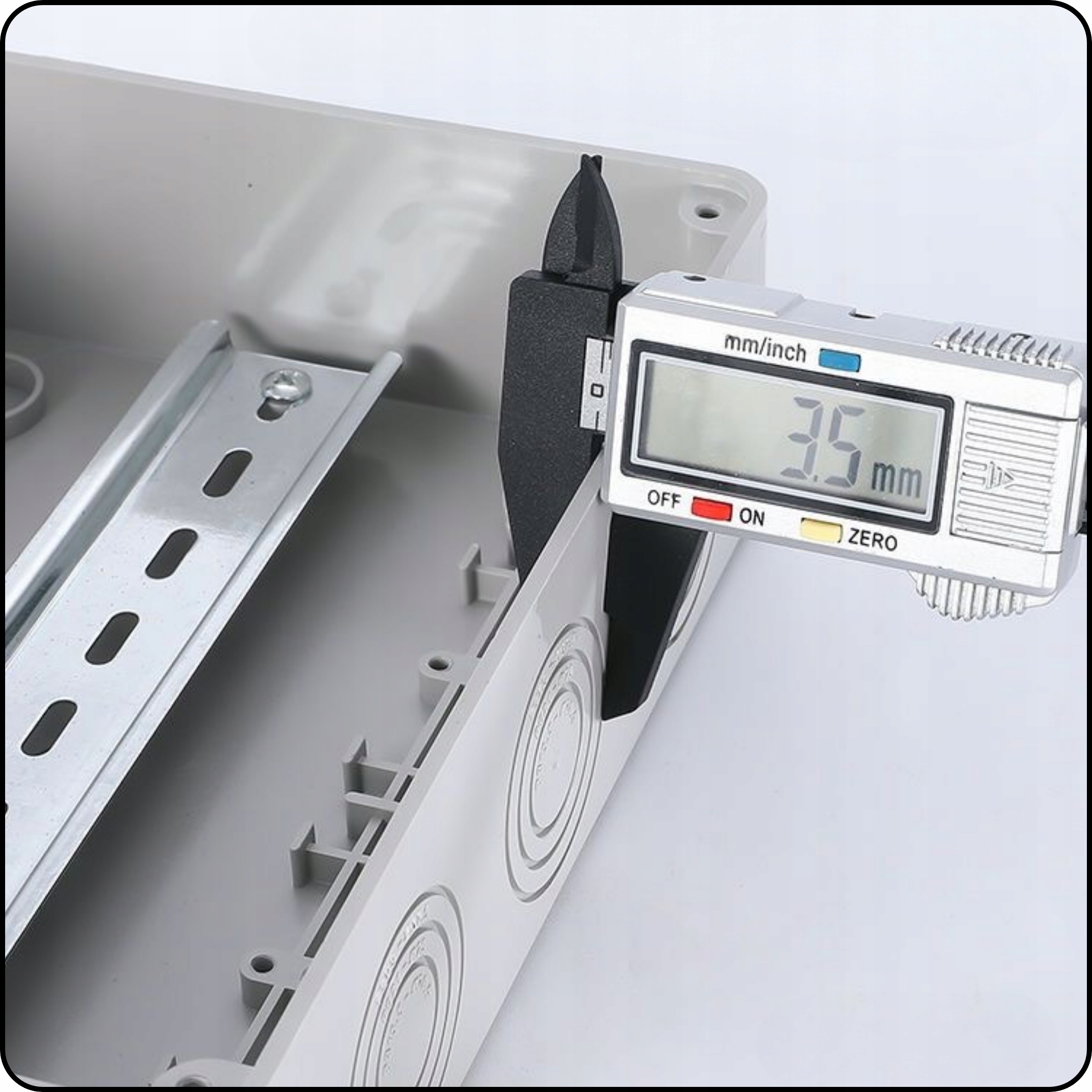 - Корпус герметичний і відповідає стандарту IP65, що означає, що він герметичний як для твердих тіл, так і для рідин. Розподільний пристрій можна використовувати на відкритому повітрі при температурі від -25°C до +60°C.