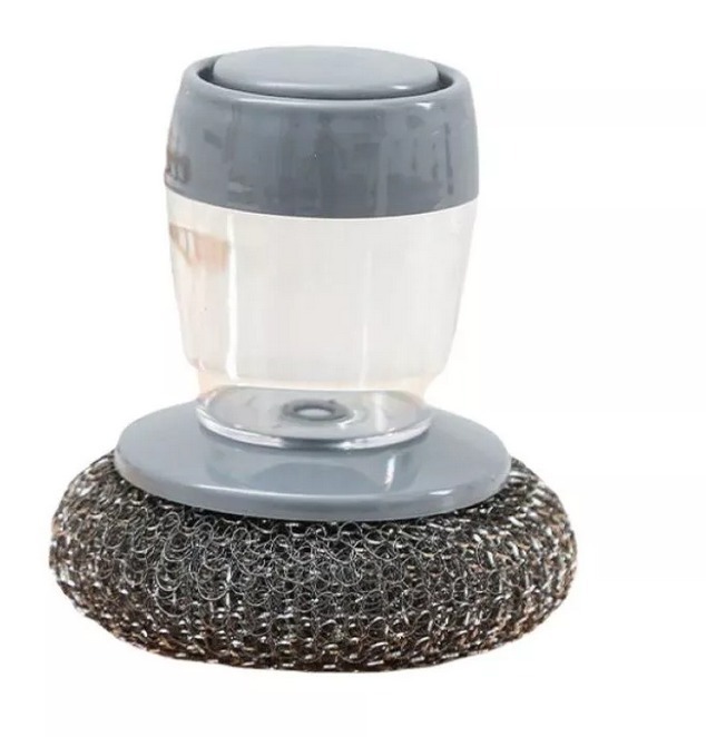 Універсальна, практична дротяна щітка для домашнього використання з дозатором миючого засобу, наприклад, для посуду.