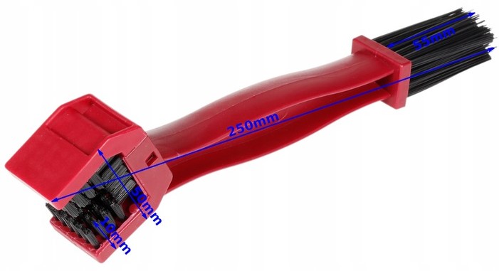 Щітка для чищення ланцюгів, наприклад, для мотоциклів, велосипедів, квадроциклів, квадроциклів. Дозволяє чистити без від’єднання ланцюга. Використовуючи щітку, ви також можете очистити інші металеві елементи, наприклад, усі типи ланцюгів, зірочок, втулок, гвинтів, муфт вільного ходу та інших елементів, які потребують періодичного обслуговування.
