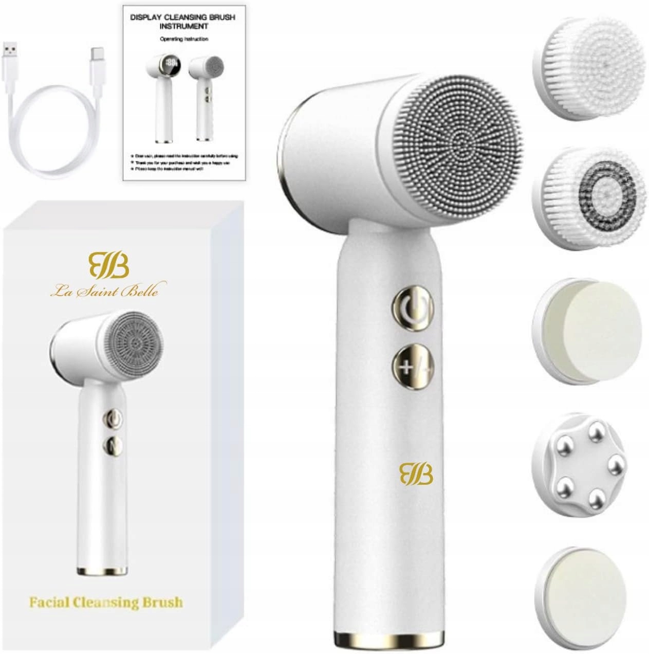 Інноваційна система очищення обличчя 6-в-1 зі світлодіодним дисплеєм — це пристрій для очищення обличчя з шістьма змінними головками щітки різної форми та м’якості, призначений для очищення шкіри за допомогою шести різних видів діяльності: