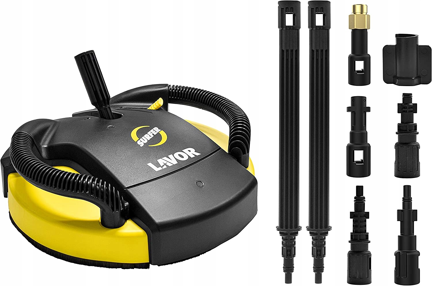 Щітка Lavor Surfer для миття кубів і стін з каталогу відомої італійської компанії Lavor для прибирання апаратами високого тиску серії home/hobby. Дві насадки, встановлені в кронштейні, здійснюють до 1000 обертів в хвилину, що робить щітку ідеальною для очищення кубів і фасадів / плоских поверхонь, розташованих вертикально. Плече ротора точно збалансоване, а низький рівень вібрації забезпечує комфортну роботу. Додатково має кришку, яка захищає від бризок води під час роботи. Завдяки своєму розміру, ефективності очищення та якості виготовлення щітка здатна підвищити ефективність поверхні мийної машини до 500% порівняно з меншими щітками або насадками під тиском. Він має запатентовану регуляцію сили/тиску прання. Щітка виготовлена в Італії з використанням матеріалів найкращої якості.