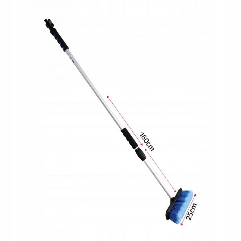 Універсальна телескопічна гідрощітка з алюмінієвою ручкою та м’якою щетиною від SATRA для очищення різноманітних поверхонь, зокрема: пофарбовані, пластикові, металеві та скляні, оскільки делікатна щетина щітки запобігає подряпинам.