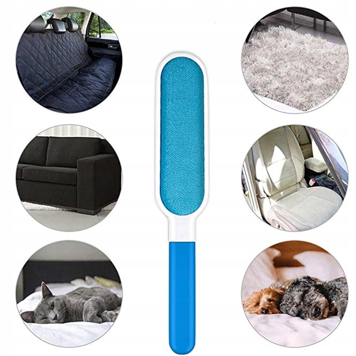 - Він призначений для використання своєї двосторонньої великої поверхні для видалення шерсті та ворсинок вашого улюбленця з одягу та меблів.