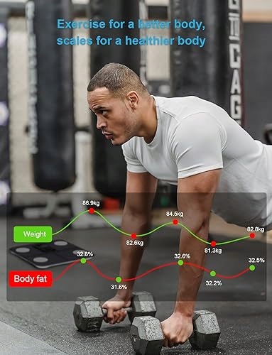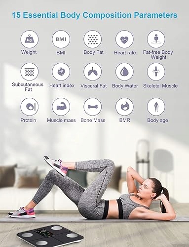 ➡ моніторинг серцевих скорочень : після кожного вимірювання частота серцевих скорочень відображається, а зміни часу можна дотримуватися за допомогою програми, що дозволяє стежити за інтенсивністю тренувань та загальним здоров’ям. Жирна тканина, м’язова маса, вода в організмі, кісткова маса, біологічний вік, суєта жиру, білка та багато інших, забезпечуючи повну картину здоров'я. Fitdays : дозволяє записувати дані, візуалізувати прогрес та синхронізуватися з такими програмами, як Apple Health , Google Fit , Samsung Health та fitbit . Датчики та електроди з вдосконаленою технологією Bioimpedance BIA забезпечують точність вимірювання до 0,05 кг. Вага має вантажопідйомність до 180 кг.