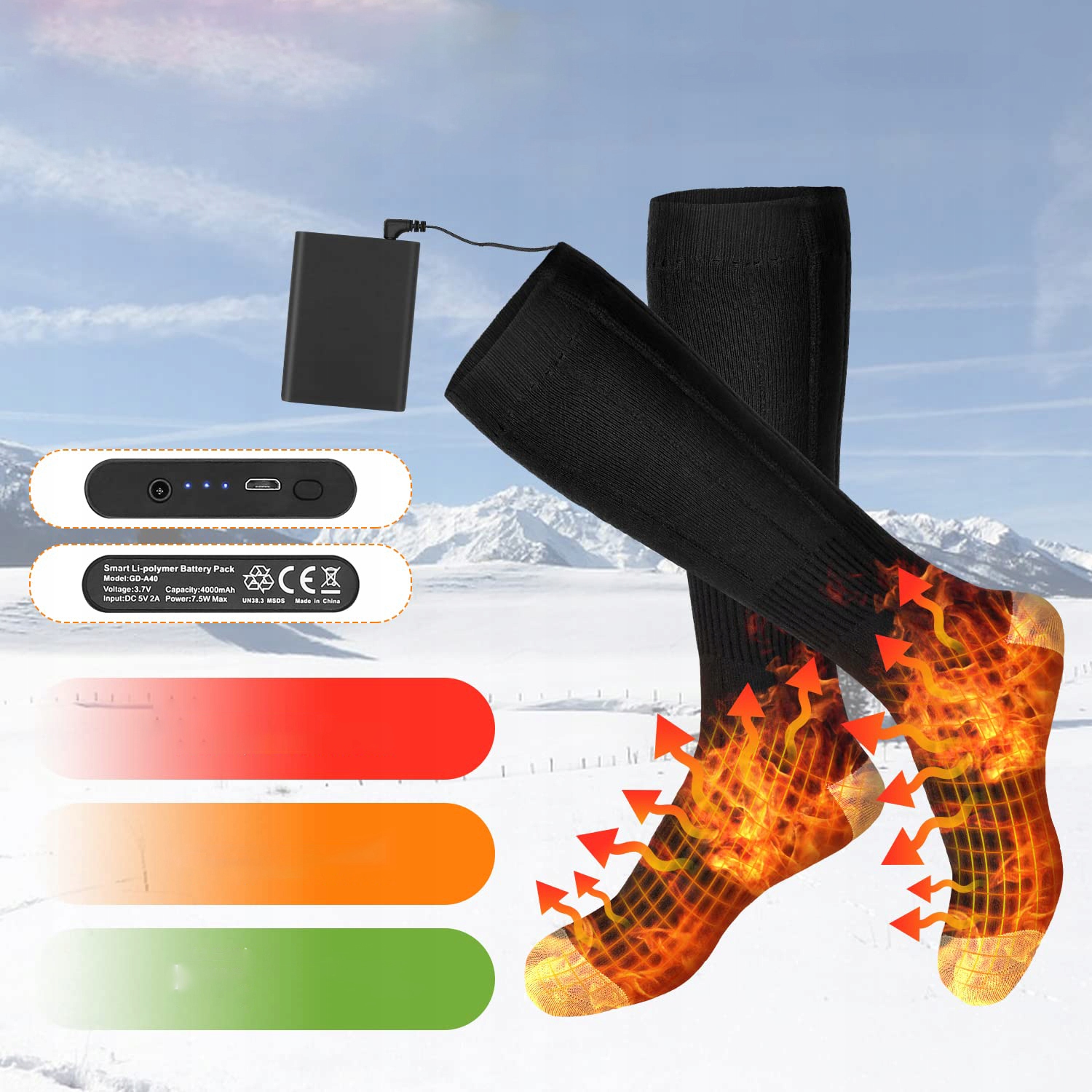 - Наші акумуляторні шкарпетки з підігрівом постачаються з двома літієвими полімерними батареями 4000 мАг забезпечують до 6-12 годин тепла.