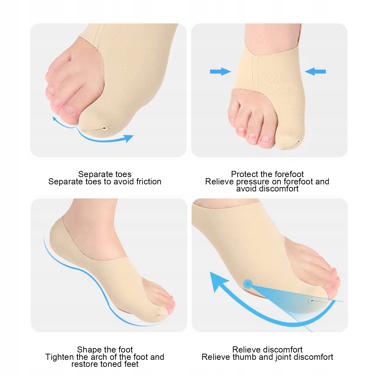 - Характеристики: тонкий дизайн, дихаючий матеріал, правильний вальгус великого пальця, S-вигин, дихаючі отвори, приємний до шкіри та зручний, двостороння компресія, висока еластичність ремінець