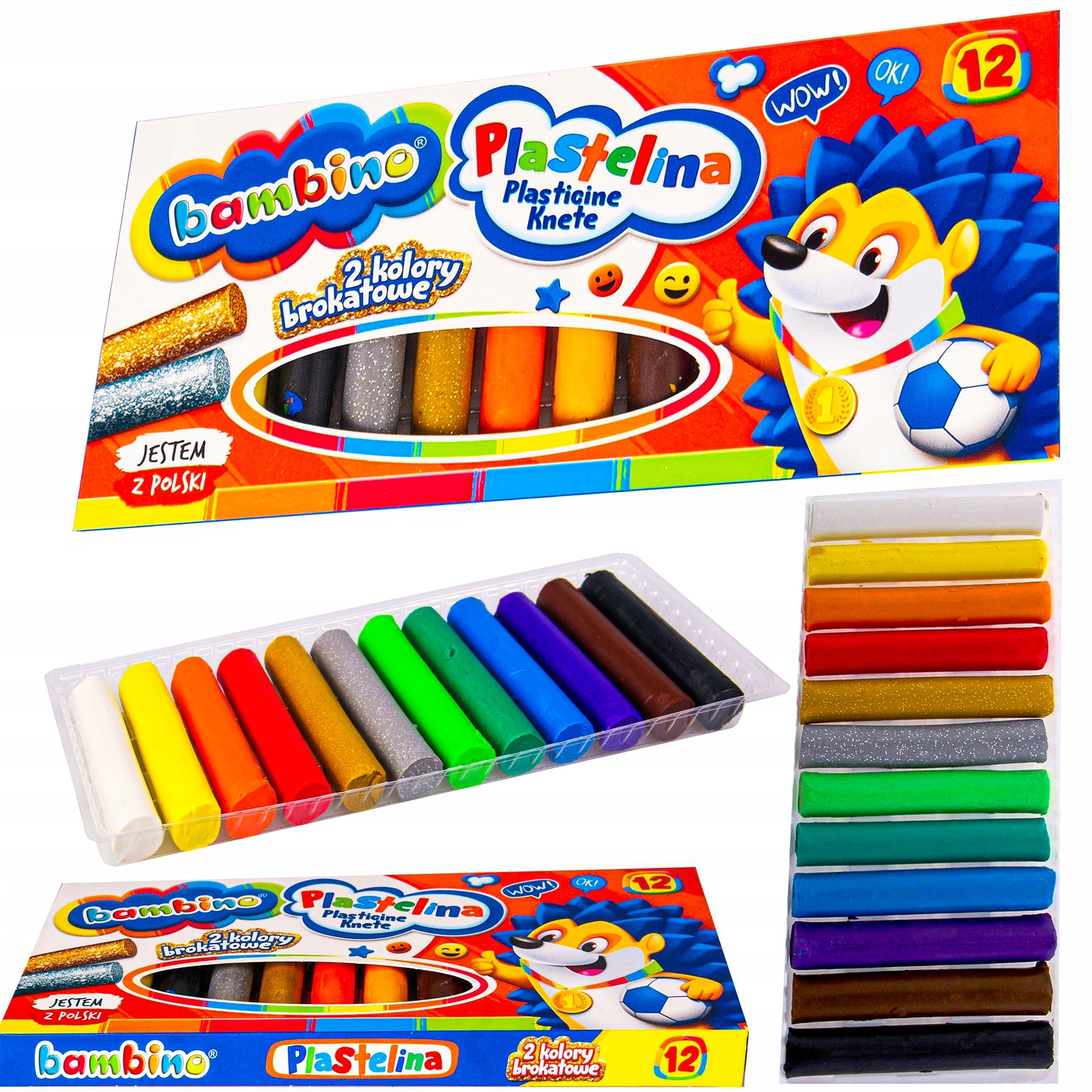 - Пластилін BAMBINO 12 кольорів, включаючи 2 кольори з блискітками - золото і срібло