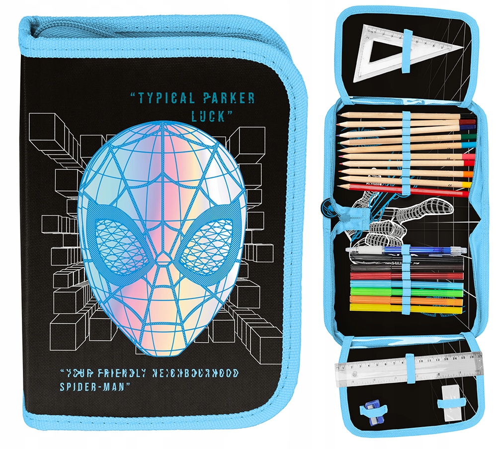 Шкільний пенал з обладнанням з останньої колекції PASO SPIDERMAN. Пенал має одне відділення з кольоровим інтер'єром і оснащений двома клапанами з аксесуарами. Усередині ви знайдете: