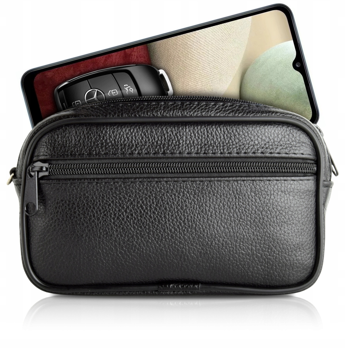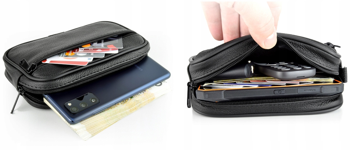 Крім телефону в кобуру можна помістити багато корисних речей. Менша передня кишеня ідеально підходить для платіжних карток, документів або монет. У велику кишеню, окрім телефону, можна покласти, наприклад, ключ від автомобіля, купюри або навіть другий телефон.