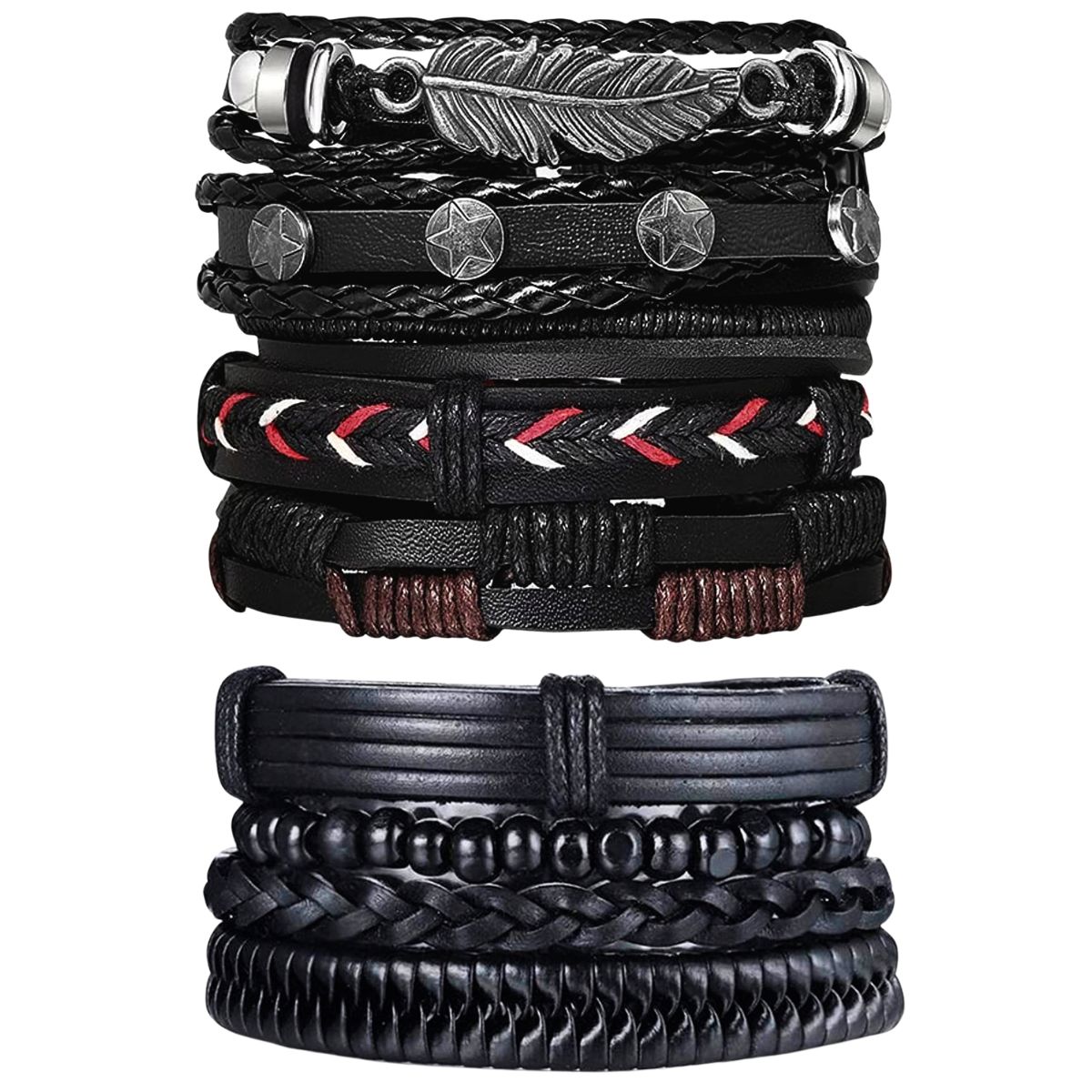 ШКІРЯНИЙ БРАСЛЕТ ЧОЛОВІЧИЙ ШИРОКИЙ, ЧОРНИЙ, ВЕЛИКИЙ XXL НАБІР, 9 ШТ.