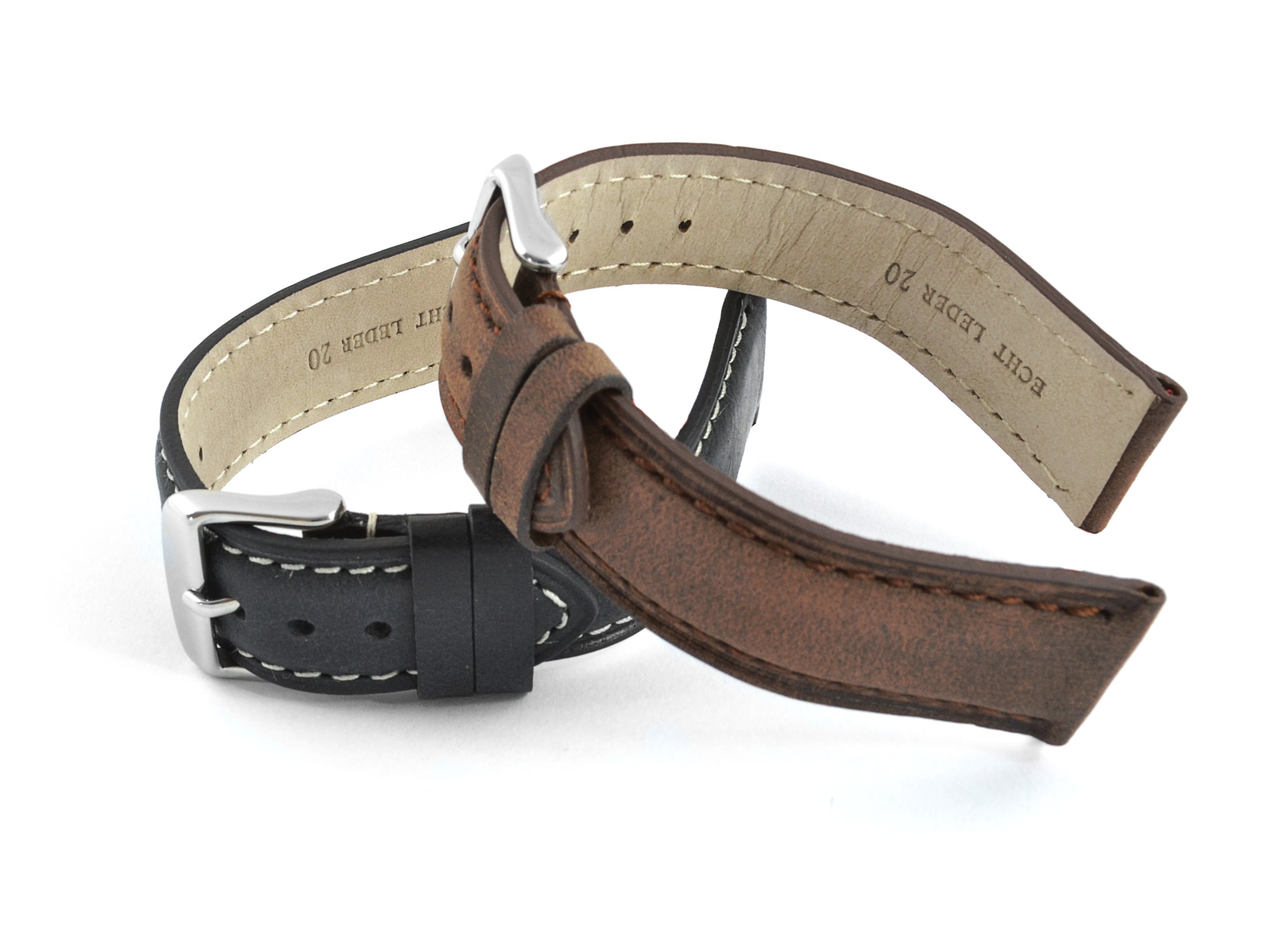 Елегантний і м'який, з телячої шкіри, ремінець для годинника Twister, прошитий ниткою.