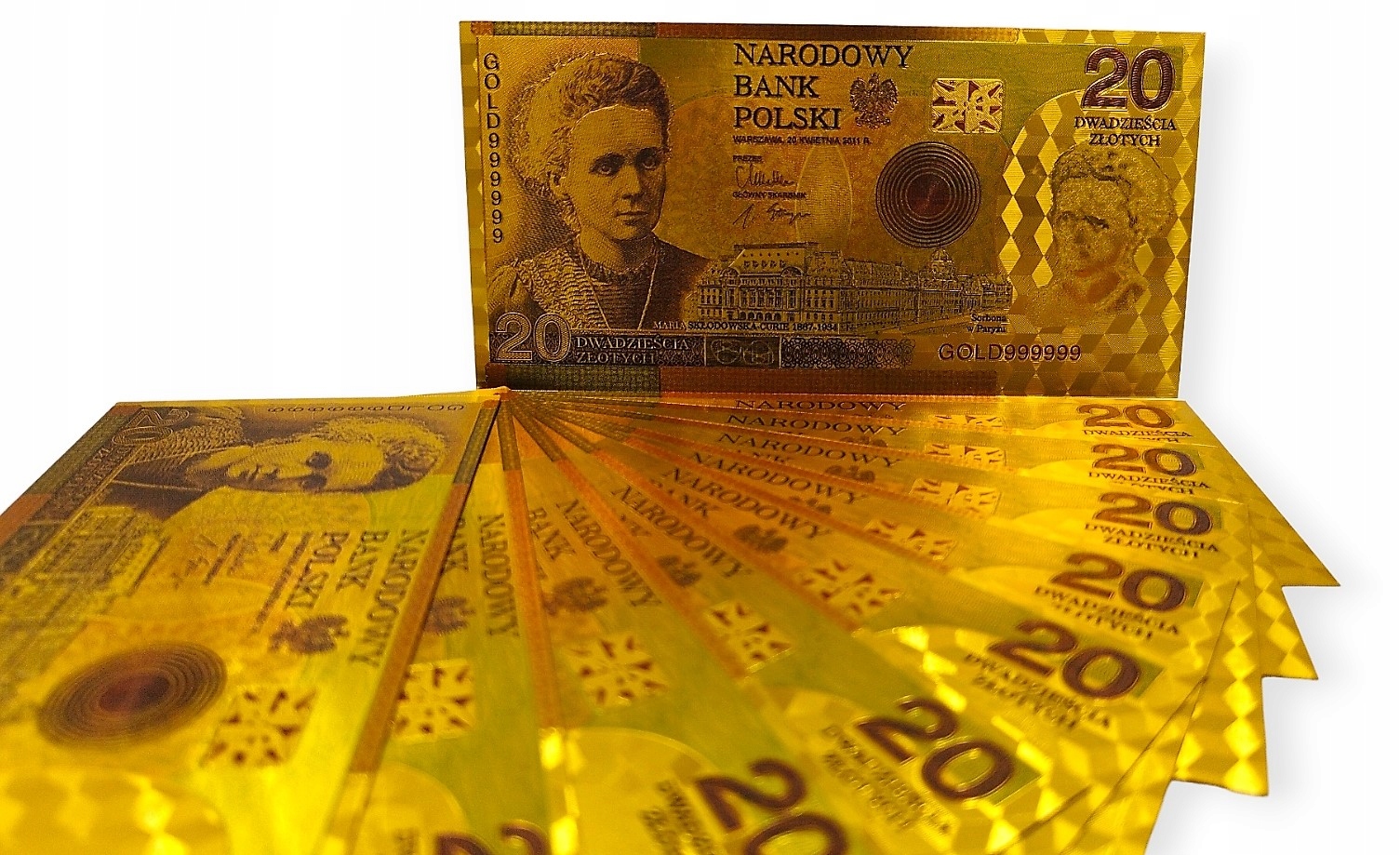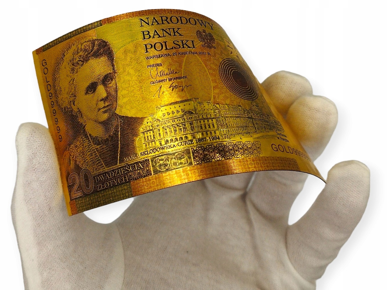 ПОЗОЛОЧЕНА БАНКНОТА НОМІНАЛОМ 20 ЗЛОТІВ КЮРІ МАРІЇ СКОДОВСЬКОЇ