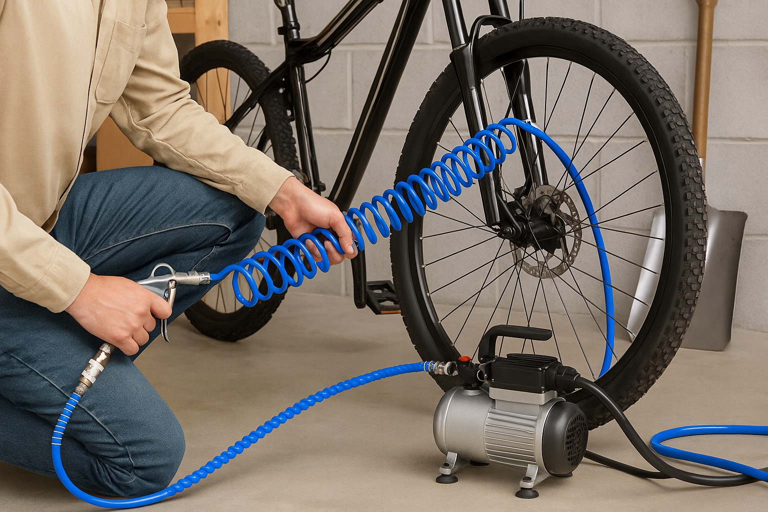 - Оснащений швидкими з’єднувачами, що дозволяють швидко під’єднати компресор і пневматичні інструменти.